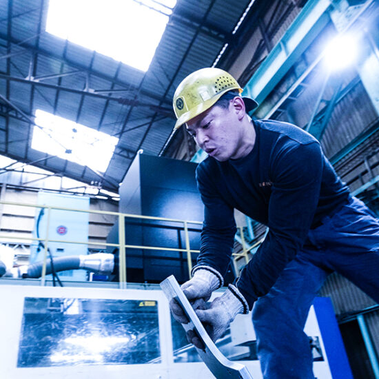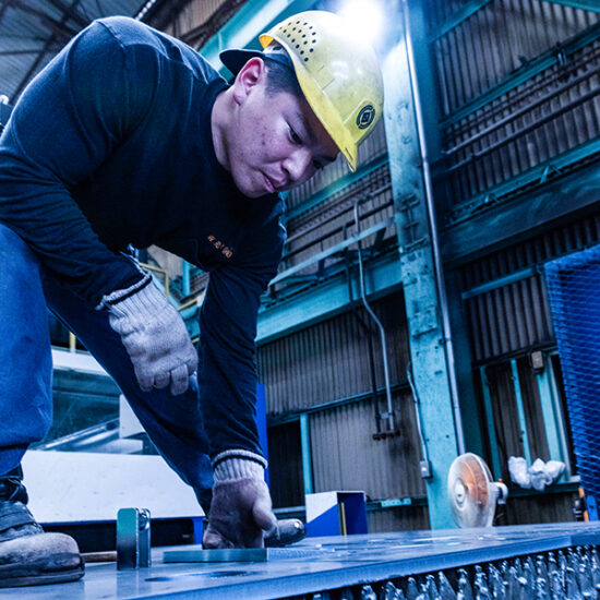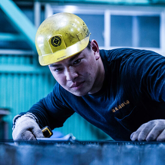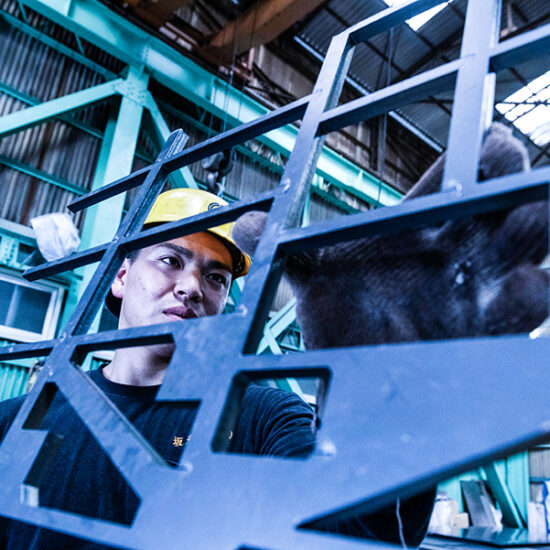 産業機械や建築構造物などに用いられる鋼板(鉄板)の切断加工を手掛ける坂元鋼材株式会社。普通科の高校出身ながら、ものづくりに興味があった白濵さんは、高校の先生に就職の相談をした際に同社を紹介され、入社して今年6年目を迎える。全くの未経験だったが、「入社すればなんとかなります。身体を動かすことが好きな人はぜひチャレンジしてほしいですね」と語る。現場の夏の暑さは厳しいものの、高校時代にバスケ部で鍛えた体力のおかげで問題ないと笑う。現在はレーザー加工の担当をしながらCADの勉強にも取り組んでいる。建築部材や機械部品など、自分が加工した部材が実際に使われているのを見かけた時には大きなやりがいを感じるという。今年11月に稼働予定の新工場での勤務を前に、週4回のジム通いで筋トレに励み、週1回のサウナでリフレッシュするなど、日々の体調管理にも余念がない。