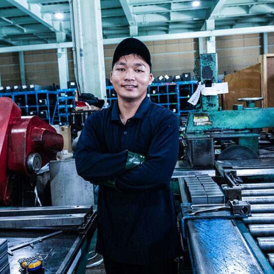 鋼管・鋼材・スリットパイプの販売と、切断・曲げ・穴あけなどの二次加工を手掛けるヒグチ鋼管株式会社。日本に来て5カ月、まだ仕事を覚えている最中だという19歳のハイさん。ベトナムでも仕事の経験はなく、母国を離れて日本での仕事も生活も初めてだ。慣れない環境の中でも、周囲の人たちが親切なおかげで毎日楽しく過ごせているという。目下、仕事と並んで必死に勉強しているのが「日本語」だ。「早くみんなとコミュニケーションをとり、もっと楽しく過ごしたい」と語る。仕事を覚えてたくさん働き、家族と一緒に家を建てたいという将来の夢も描いている。勉強熱心なハイさんは、日本の小説をネット翻訳で読むことが趣味だと、少し照れ笑いを浮かべながら話してくれた。