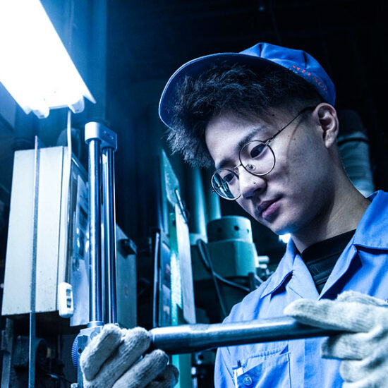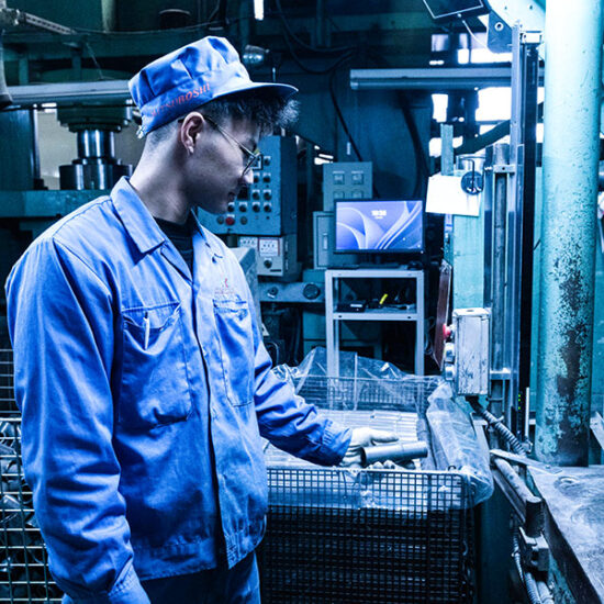 自動車・二輪車向けの重要保安部品を製造する株式会社三星製作所。地元の高校を卒業後、バイク好きが高じて同社へ入社。現在は現場管理から製造工程の担当へ部署が変わり、まさに成長段階。これまで一人で進めていた作業が、班でアイデアを出し合いながら取り組むスタイルに変化し、チームで動く達成感に、工場ならではの醍醐味を感じていると話す。将来は管理職をめざしたいという力強い目標も掲げる福岡さん。ポリシーは「自分に厳しく、人に優しく」で、「周りには優しくしています!」と、無邪気さの残る笑顔を見せた。「想像していた現場とは良い意味で違い、働きやすい環境なので同世代にもこの仕事の魅力をもっと知ってほしい」と、前向きに語ってくれた。