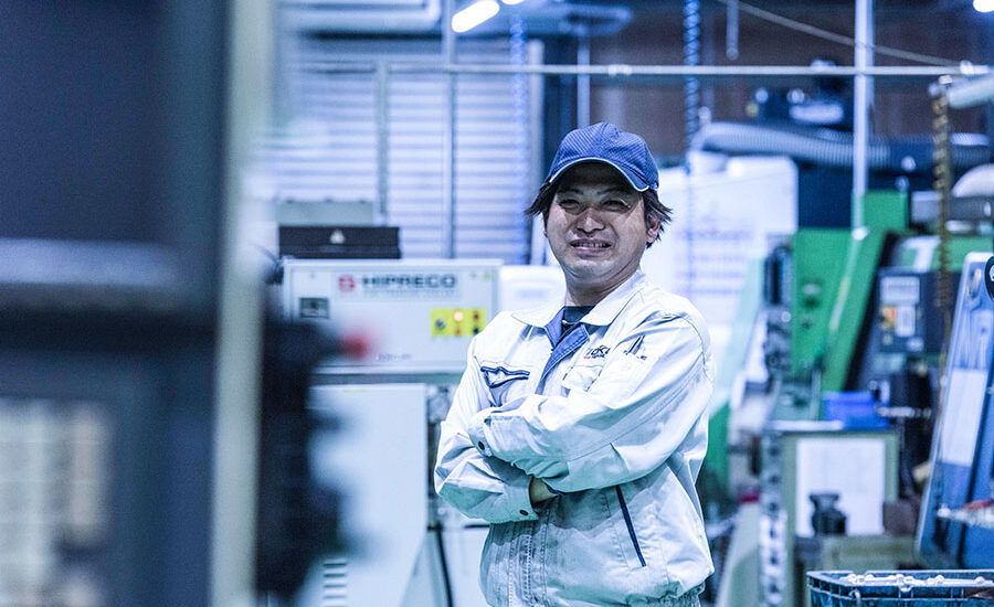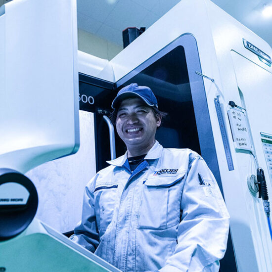超高圧プランジャーポンプ及び周辺機器の開発を手掛ける株式会社トクピ製作所。野球少年だった脇森さんは、野球推薦で三重県の大学へ入学し、卒業後はそのまま地元企業に就職。その後、生まれ育った大阪で暮らしたいと転職し、2年になる。現在はマシニング加工で高圧ポンプの部品を手掛けているが、以前もものづくり企業で勤務していたこともあり、大きな戸惑いはなかったという。ただ、同社ではプログラミングの知識も必要になるため、セミナーに参加したり先輩に指導してもらったりと日々勉強中。「一日でもはやく戦力になりたい」と意気込む。プライベートでは3人の子どもたちの父親で、休日は息子の野球チームのコーチをしているそう。練習が休みの時は、自身も草野球を楽しんでいるという。