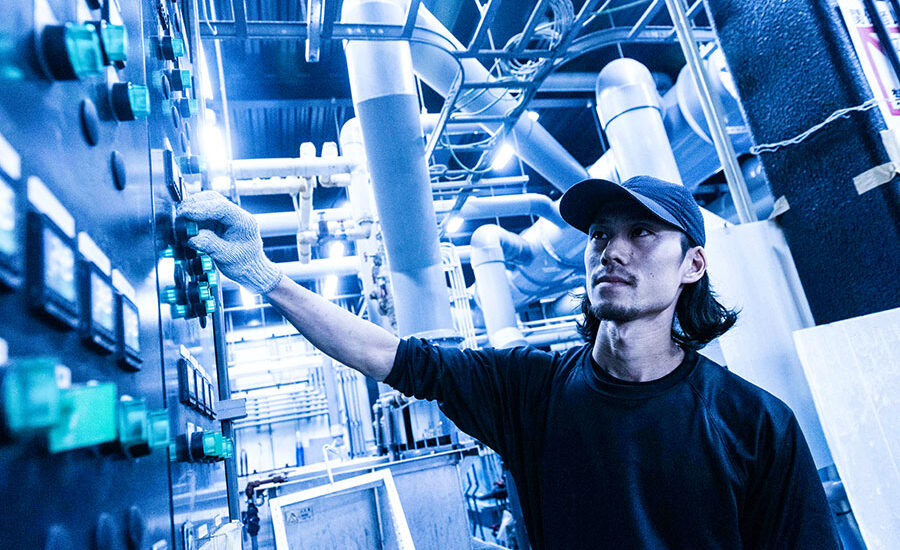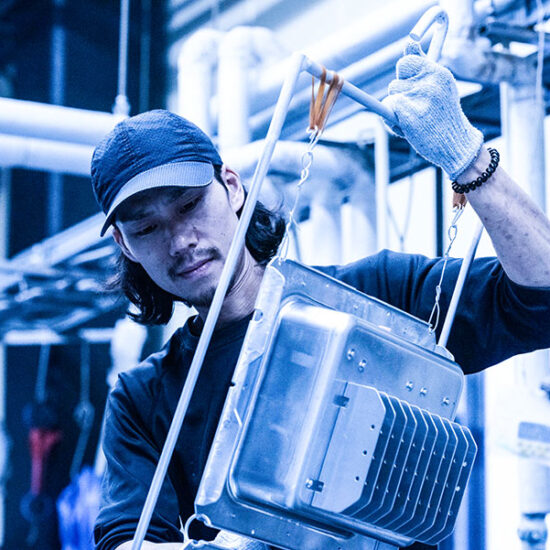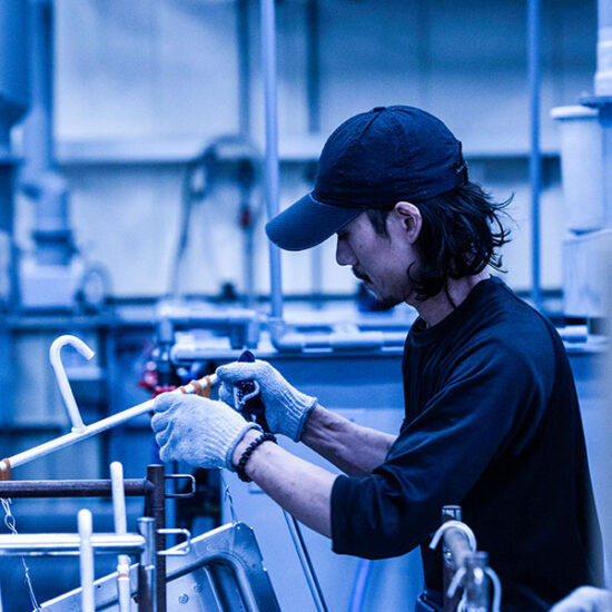 アルミ表面処理加工とアルミの切断、曲げ加工を中心に手掛ける旭特殊工業株式会社。大学を卒業後、サービス業に勤めていた濱中さんは、父の誘いで家業に戻り、今年で10年になる。子ども時代に遊びに行ったことはあれど、実際にどんな仕事なのかは詳しく知らないまま戻ったこともあり、不安だらけだったという。「2、3年してやっと慣れてきたという感じでしたね(笑)」。主に自動車やバイクの部品などを手掛けている。以前は父と一緒に作業することも多かったが、後から家業に戻った現代表である兄と共に家業を盛り上げている。プライベートでは月2回ほどバス釣りを楽しんでおり、無になれる時間がリフレッシュに繋がっているそうだ。